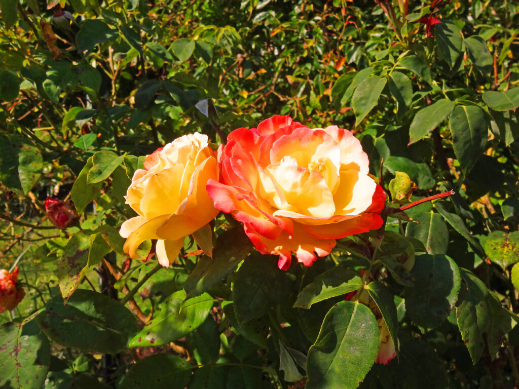 En été, les roses Iceberg illuminent le jardin blanc d’une floraison délicate. Pergolas et allées sont couvertes de rosiers grimpants et de glycines parfumées mauves et blanches.