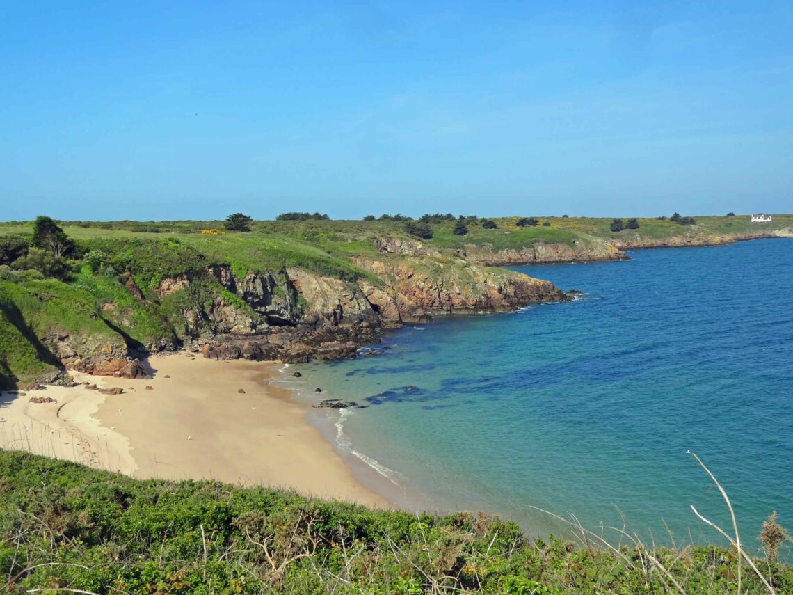 De crique en crique, l’océan aux eaux turquoise se dévoile depuis les falaises granitiques. En contrebas, les vagues viennent se briser sur les plages dans un tourbillon d’écume. Le spectacle naturel est saisissant et change au fil des marées. L’accès à certaines criques de sable blond est autorisé et permet une baignade rafraîchissante en été. La côte sauvage alterne sentier en corniche et chemins balisés dans la lande. Le trou du souffleur impressionne par son grondement lors des fortes houles. Pour préserver la biodiversité, la lande est accessible uniquement par des chemins balisés.