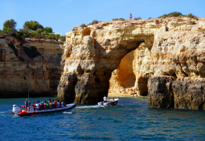 Des excursions en bateau permettent d’explorer les grottes marines de l’Algarve. Ces sorties en mer offrent une vue unique sur les falaises et grottes du littoral portugais.
