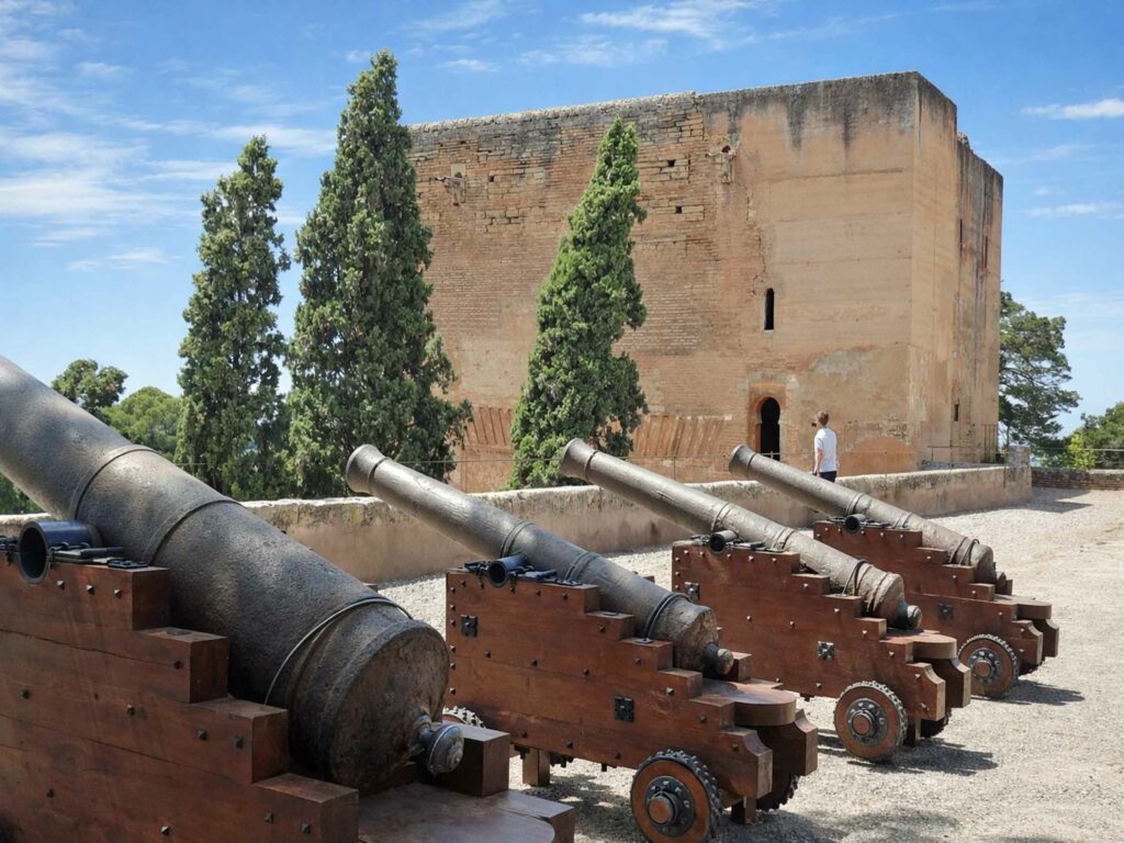 Les remparts massifs témoignent du rôle militaire essentiel de l’Alcazaba. À différentes époques, la forteresse est transformée en prison d’État. Des canons historiques longent les chemins de ronde et rappellent les anciens systèmes de défense de l’Alhambra. Depuis les remparts, la vue panoramique est spectaculaire. Le regard embrasse l’Albaicín, classé au patrimoine mondial. Les collines du Sacromonte et les toits de Grenade s’étendent à l’horizon.